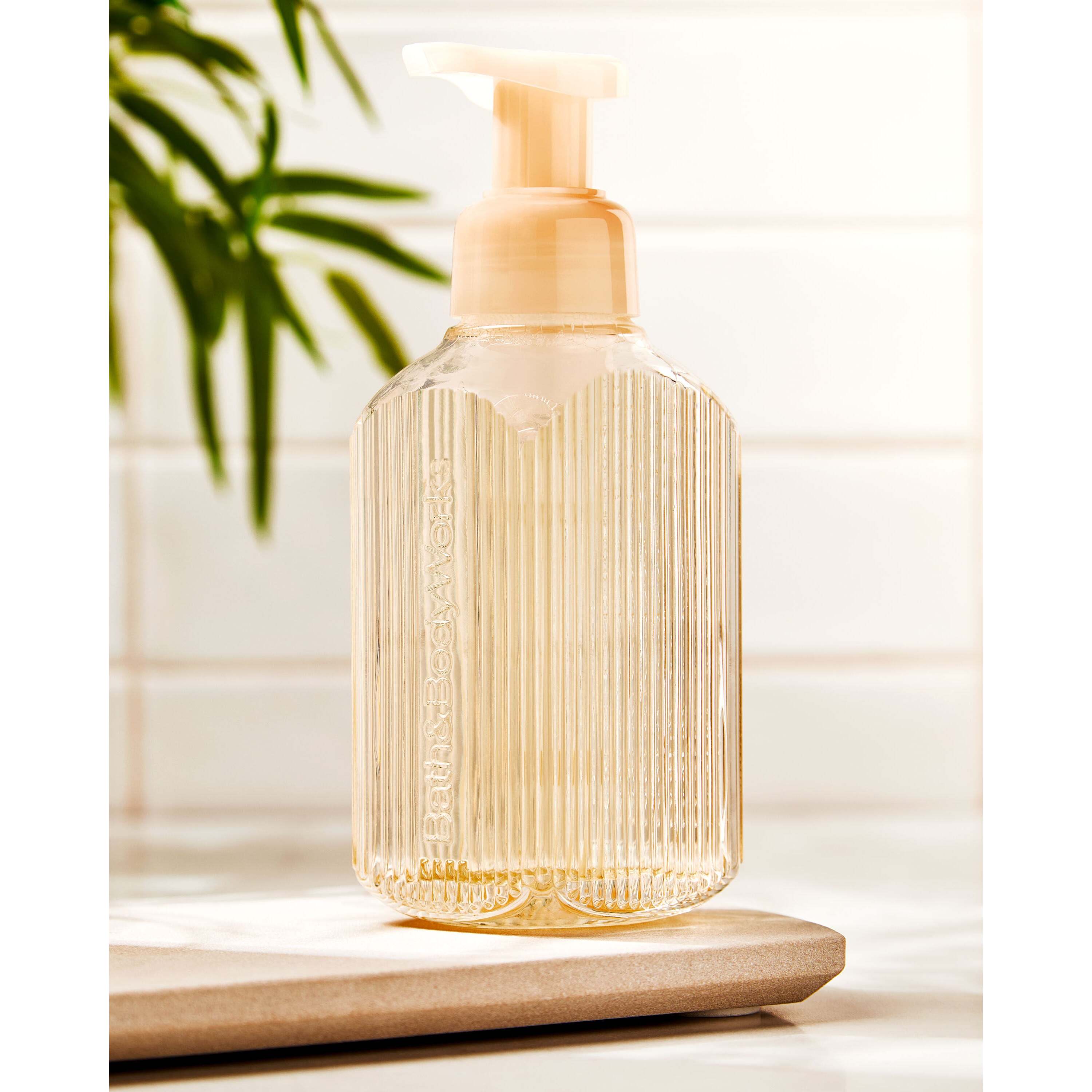 Cream Vertical Lines Gentle & Clean Foaming Hand Soap Dispenser