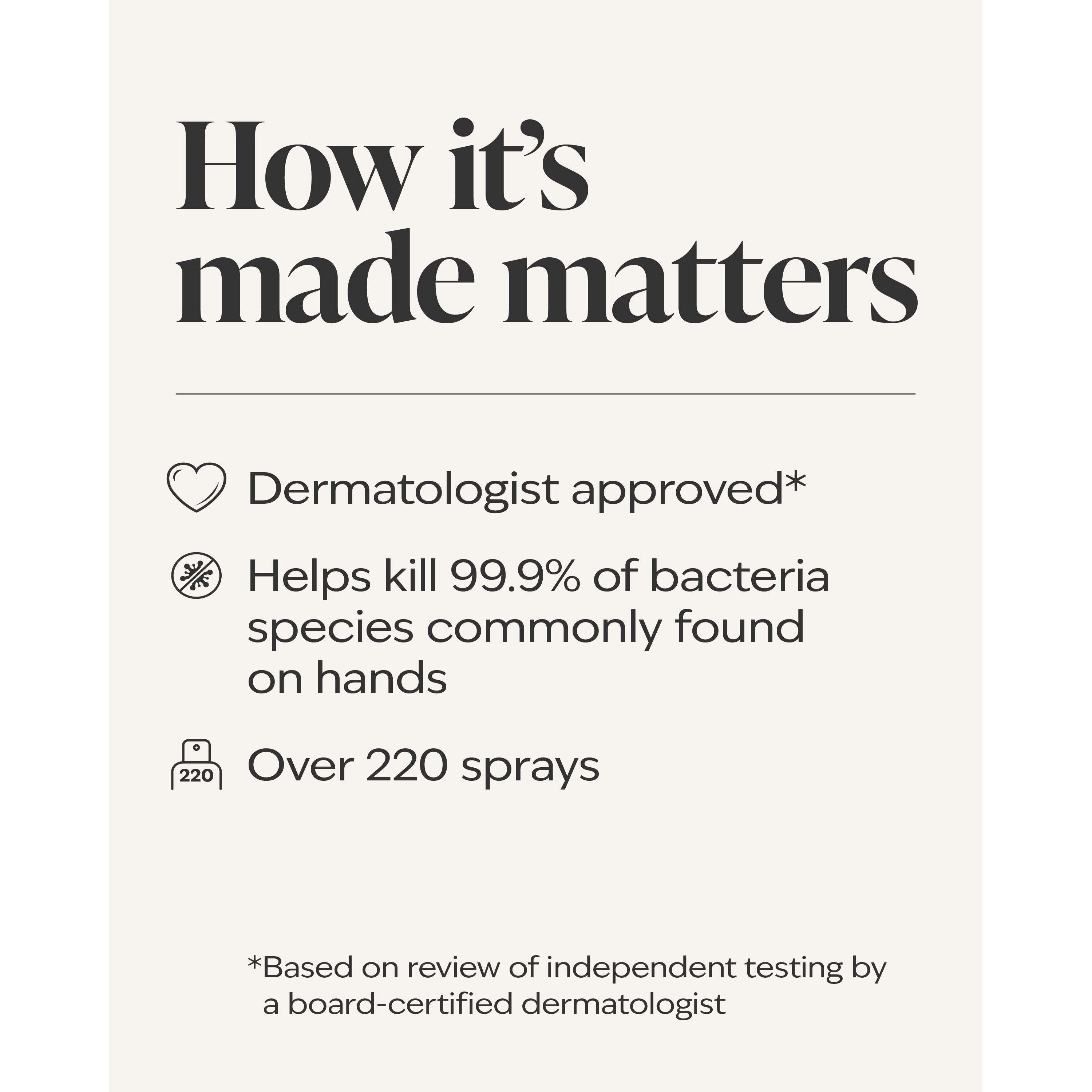 What It Does: Kills 99.9% Of Most Common Bacteria*.
