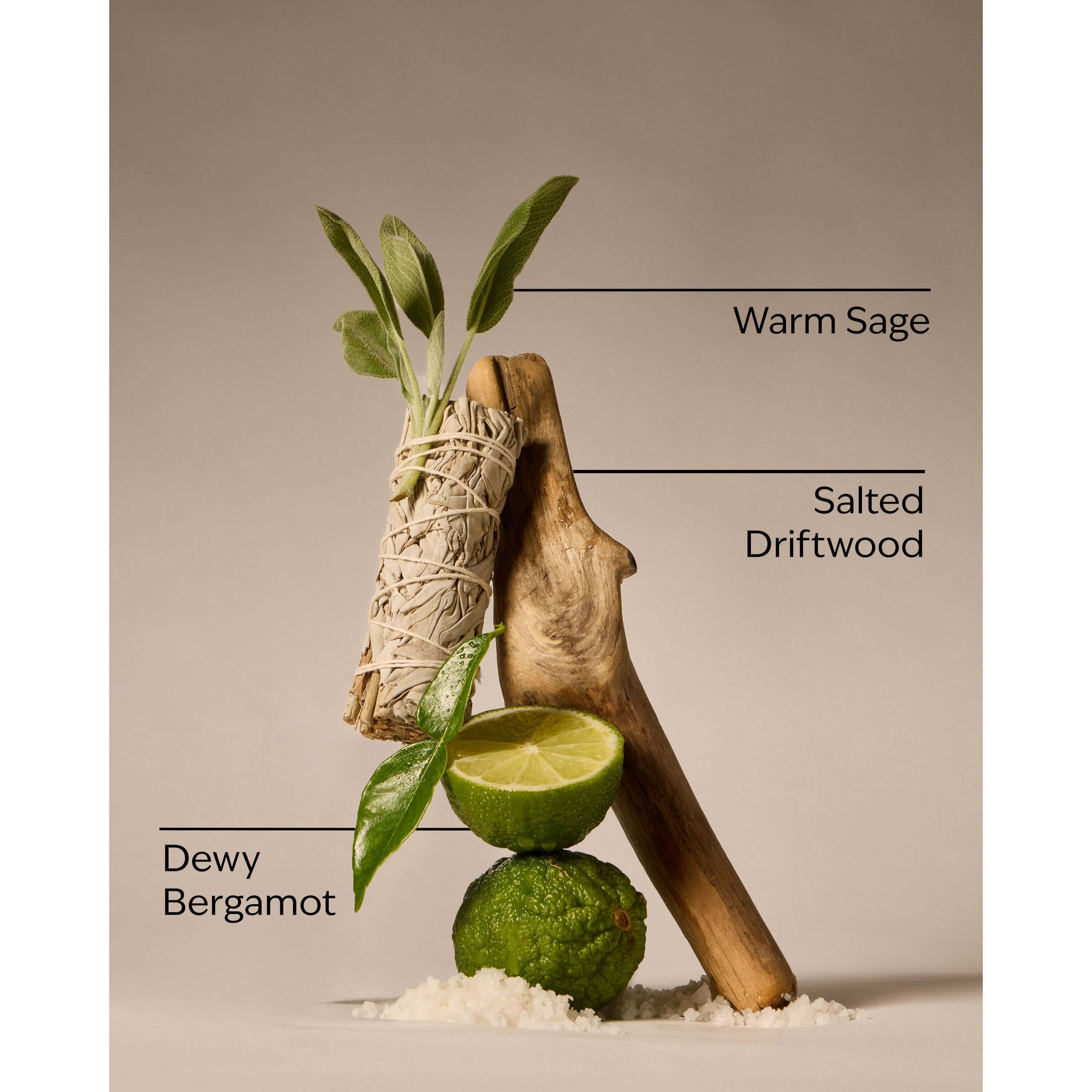 Fragrance Notes: Dewy Bergamot, Warm Sage And Salted Driftwood.